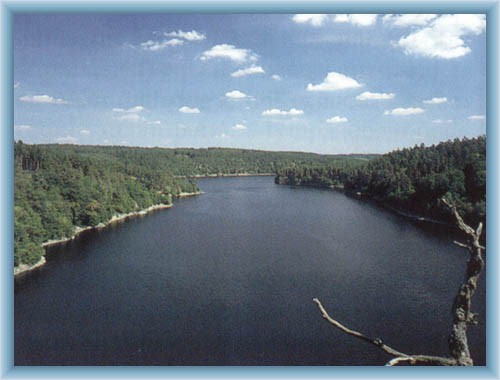 | Dalešice – possible to visit the ruin of Čalonice, Dalešice dam, or the brewery. The ruin of the castle Čalonice is from 13th century. Today only the base of the castle is visible. | | Kozlany- possible to see the castle Kozlov built in 14th century belonging to the Pernštejn family. It has been deserted since 16th century. | | Číměř- Possible to visit the Holoubek castle built in the first part of 14th century (first mentioned in 1353). Since 1447 it has been mentioned as deserted. The surrounding area has been flooded. |