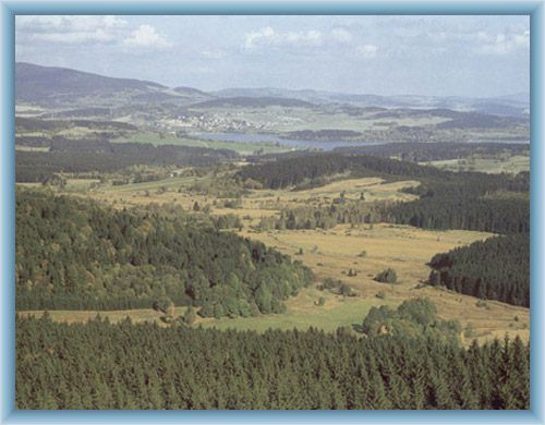 | Horní Planá - The dominant feature of the town of Horní Planá is originally a Gothic church of St. Markéta, nowadays converted into Neo-Gothic style with preserved Renaissance wall paintings. Other landmarks include the birthplace of Adalbert Stifter (writer, poet and painter), Stifter Park, originally the Baroque parsonage and the Neo-Baroque Town Hall. | | Stifter’s Beech - Stifter was one of the strongest beech trees in the Český Krumlov district. Unfortunately, two windstorms have destroyed it - the first windfall was on December 8, 1979, in 1994 another storm finished the work and the beech fell. | | Stifter’s Spruce - Once Stifter's spruce was here. It was thwarted by strong winds in 1969. Today, the rest of the stump is visible. The age of the tree was estimated at 200 years. The circumference of the trunk measured 3.5 m. The wind also demolished a chapel under the spruce. |